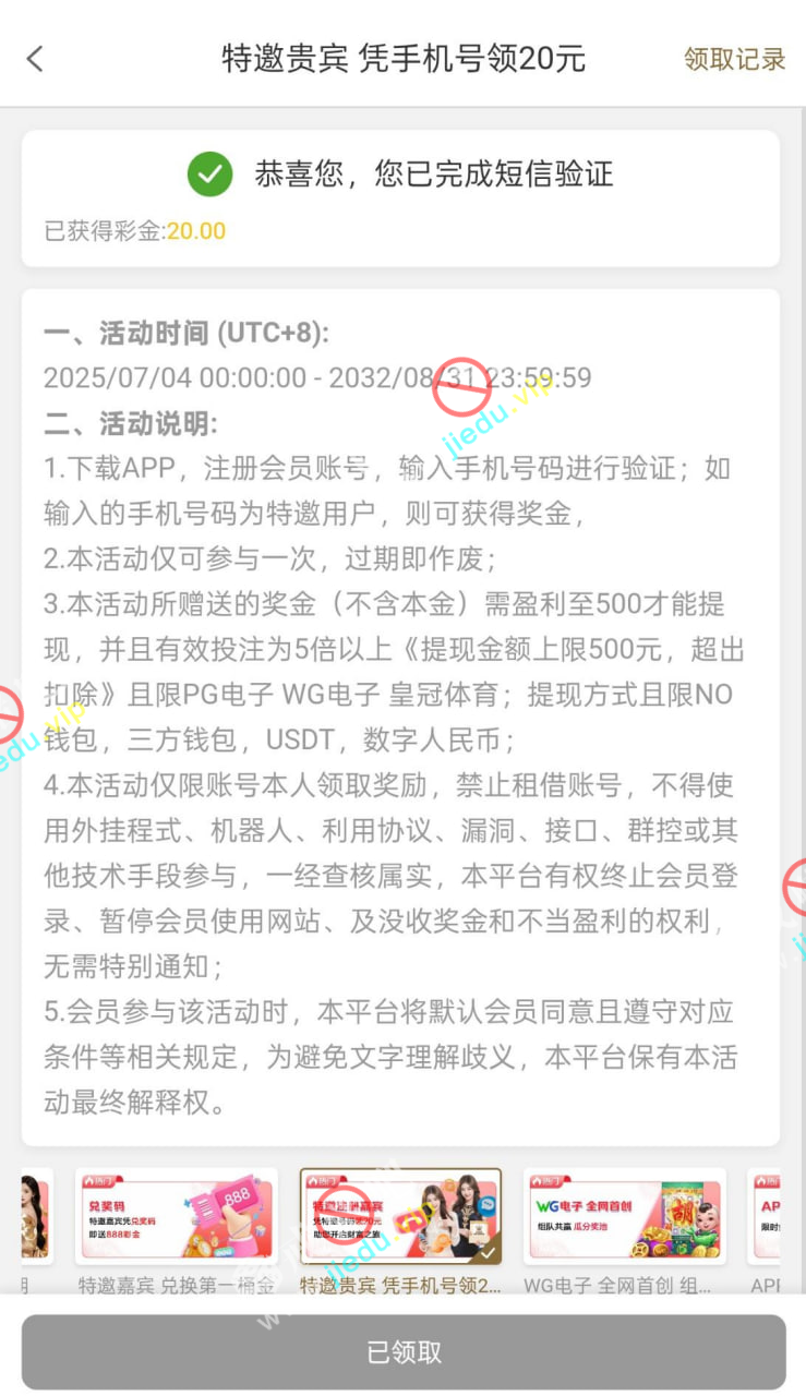 到账情况: 白嫖即可(勿充值)