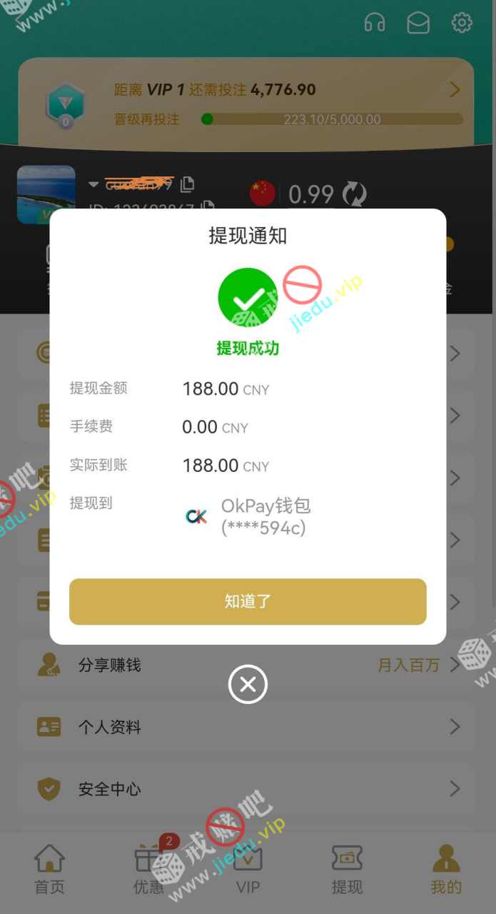 到账情况: 白嫖即可(勿充值)