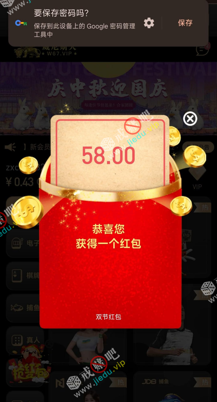 送了58,估计要充值过的,这台半黑 。