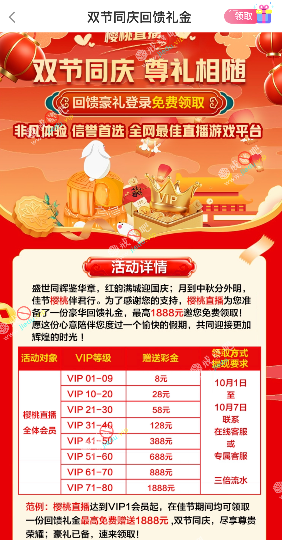 【樱桃直播】—✅—vip回馈彩金