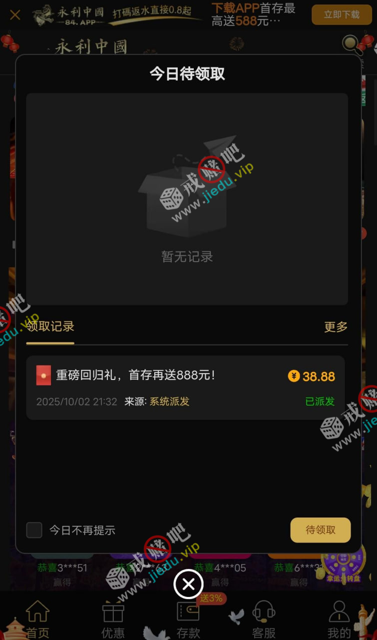 到账情况: 白嫖即可(勿充值)