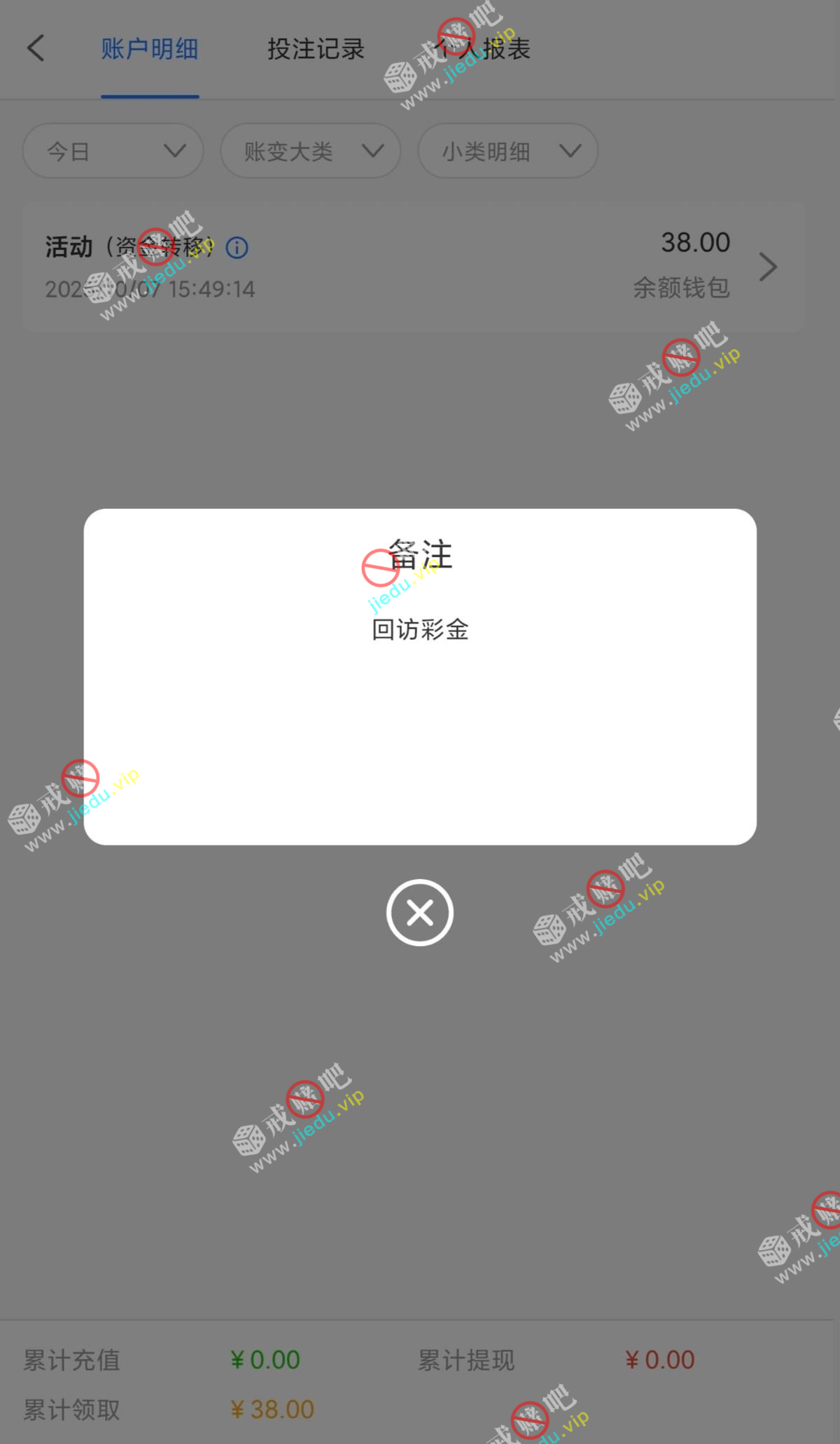 打电话说是有回访送彩金,我也登录一看有 38。