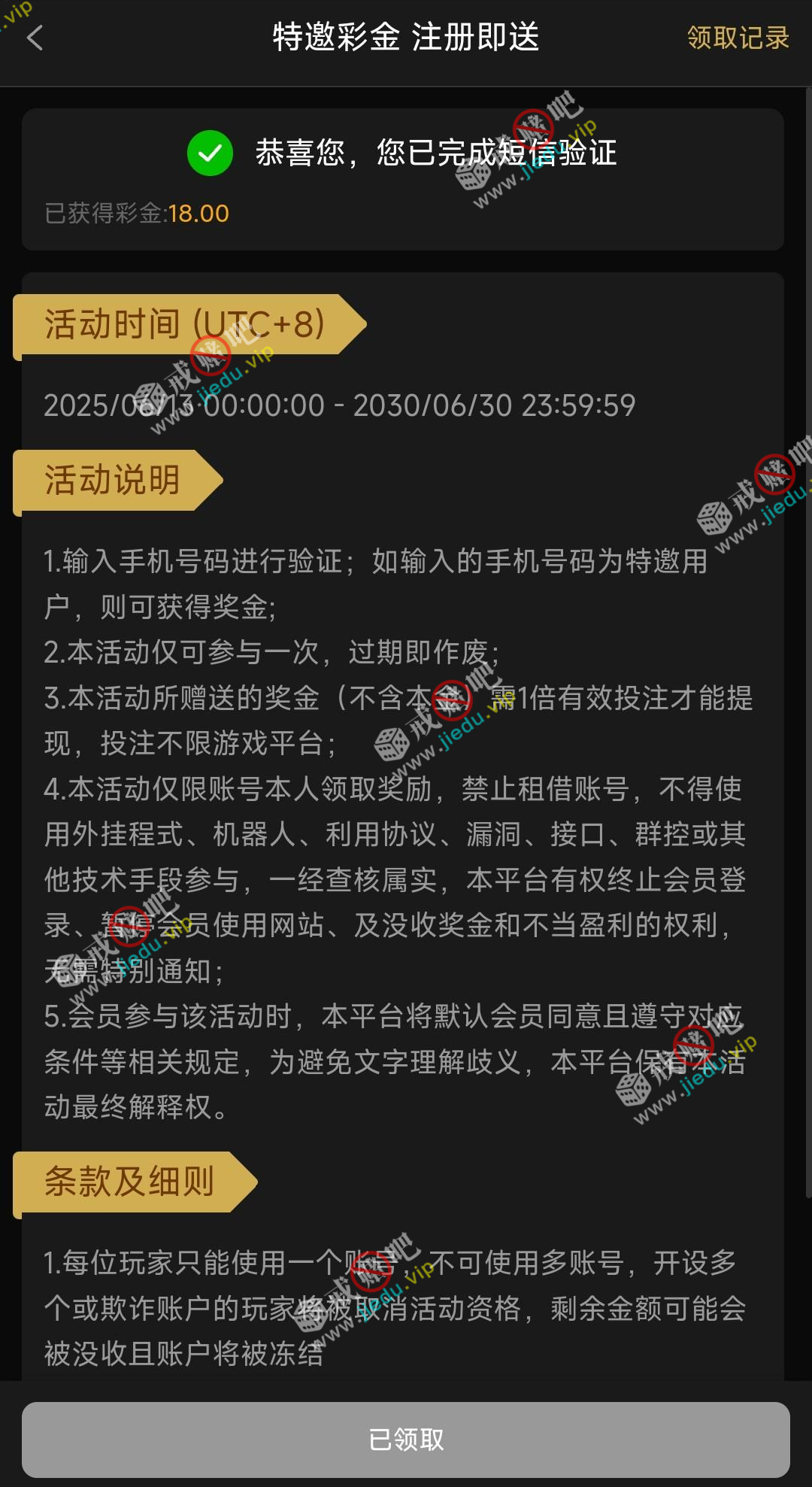 到账情况: 白嫖即可(勿充值)