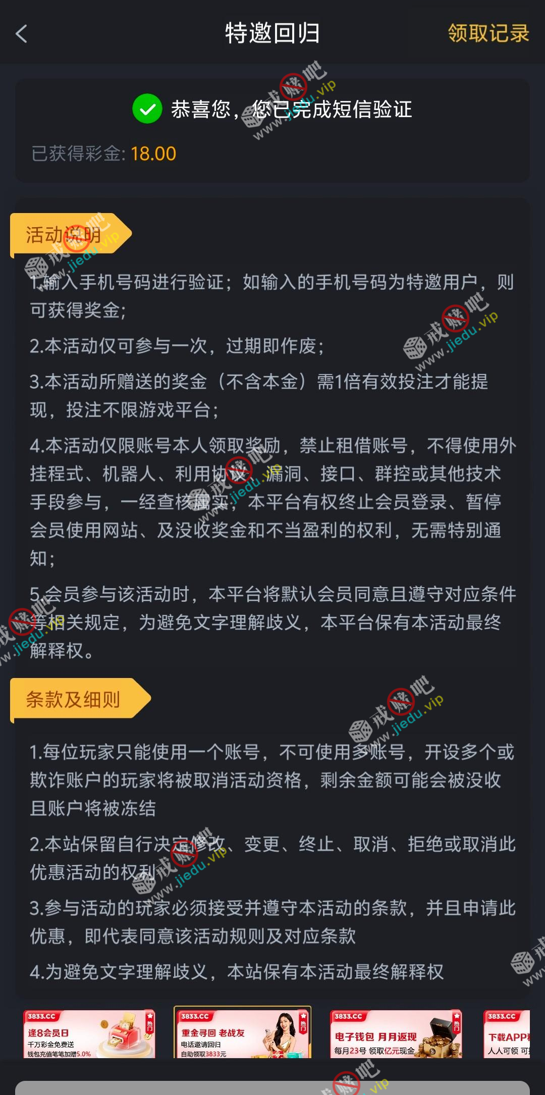 到账情况: 白嫖即可(勿充值)