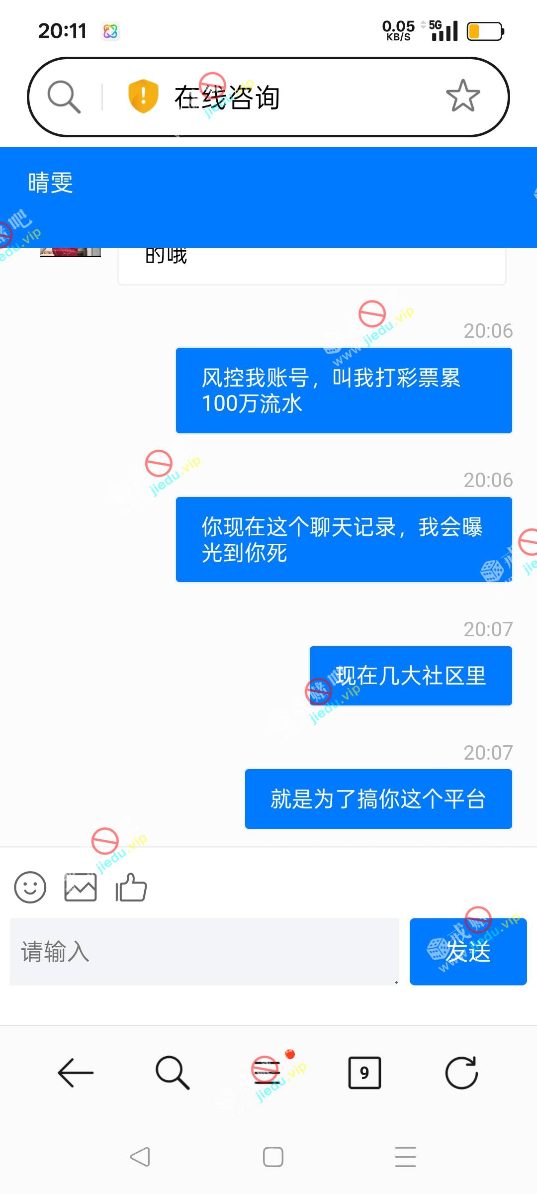 21年就黑我8万多,借口银行风控,后来注单异常,限制我账户,只能打彩票类游戏,叫打1百万流水,无限打码,我在这里看到他台子出现正好爆光    希望大家不要充值,撸死他,我现在找回账号是我聊天的证据