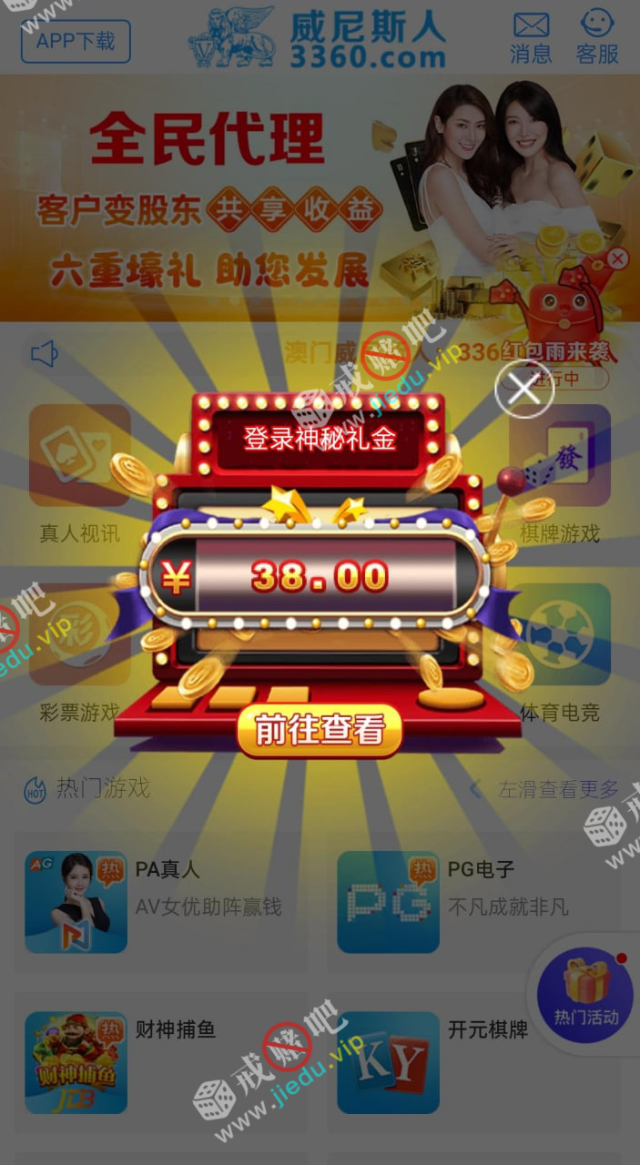3360登录就有38神秘彩金,好久没有充值了,有号的去看看