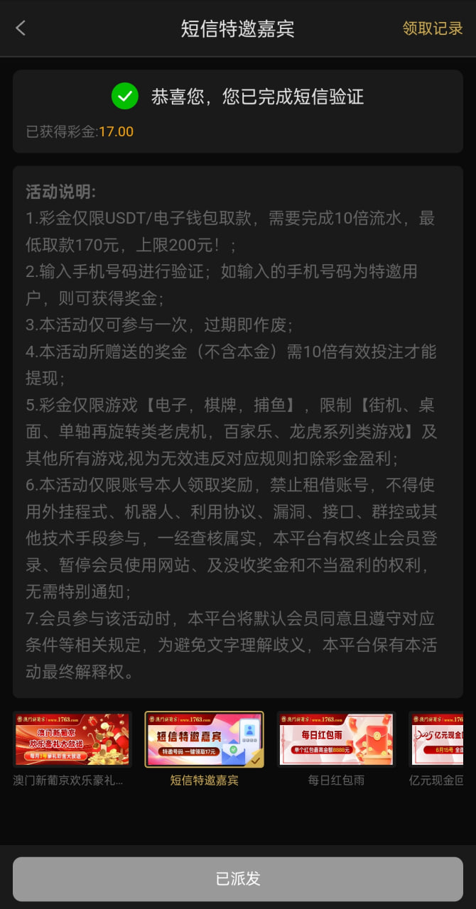 有号的兄弟们短信特邀居然给了17,可以去试试
