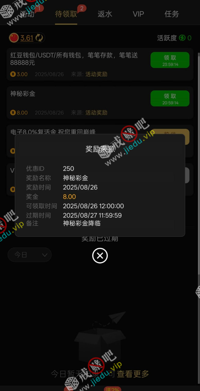 到账情况: 白嫖即可(勿充值)