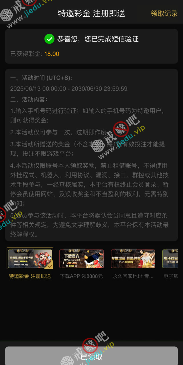 到账情况: 白嫖即可(勿充值)