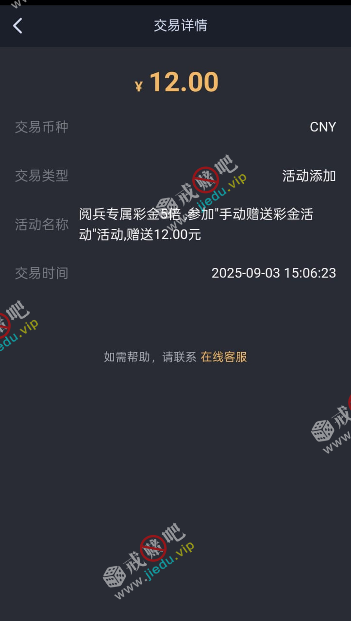 联系客服发账号领取阅兵彩金即可,我没充值过送了12。