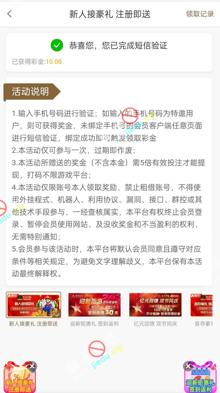 到账情况: 白嫖即可(勿充值)