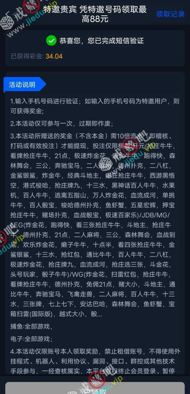 到账情况: 白嫖即可(勿充值)