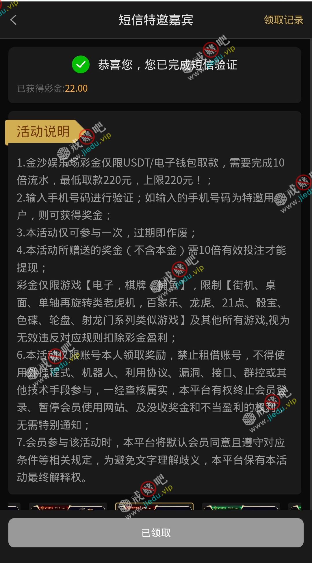 新用户注册绑定提款地址,优惠活动验证手机号自助申请,彩金限制活动图自行查看。