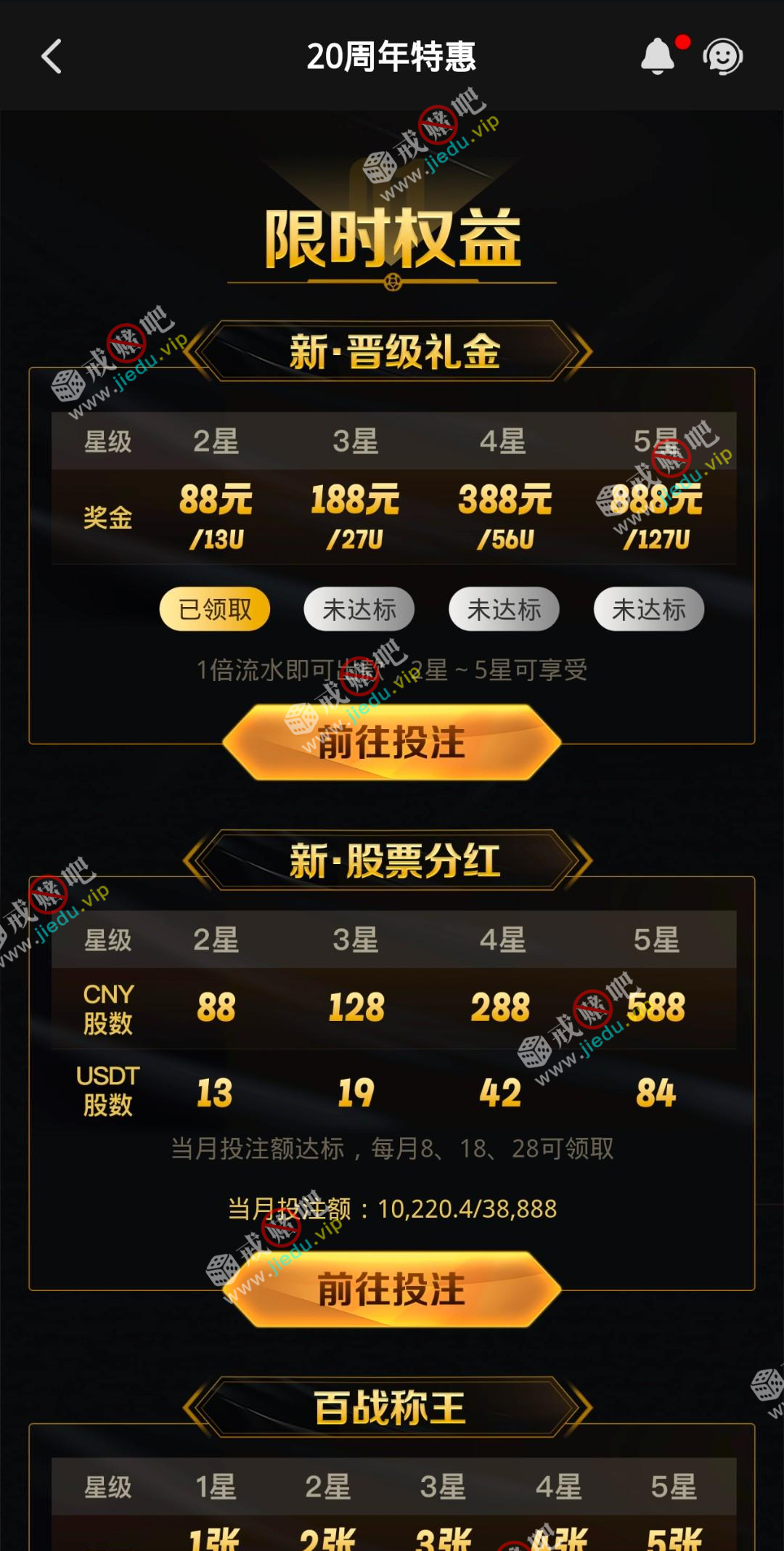 凯发20年,有星级的可以领取晋级礼金,我领了88,一把挂壁。ps:这是个畜牲杂种台,千万别充值