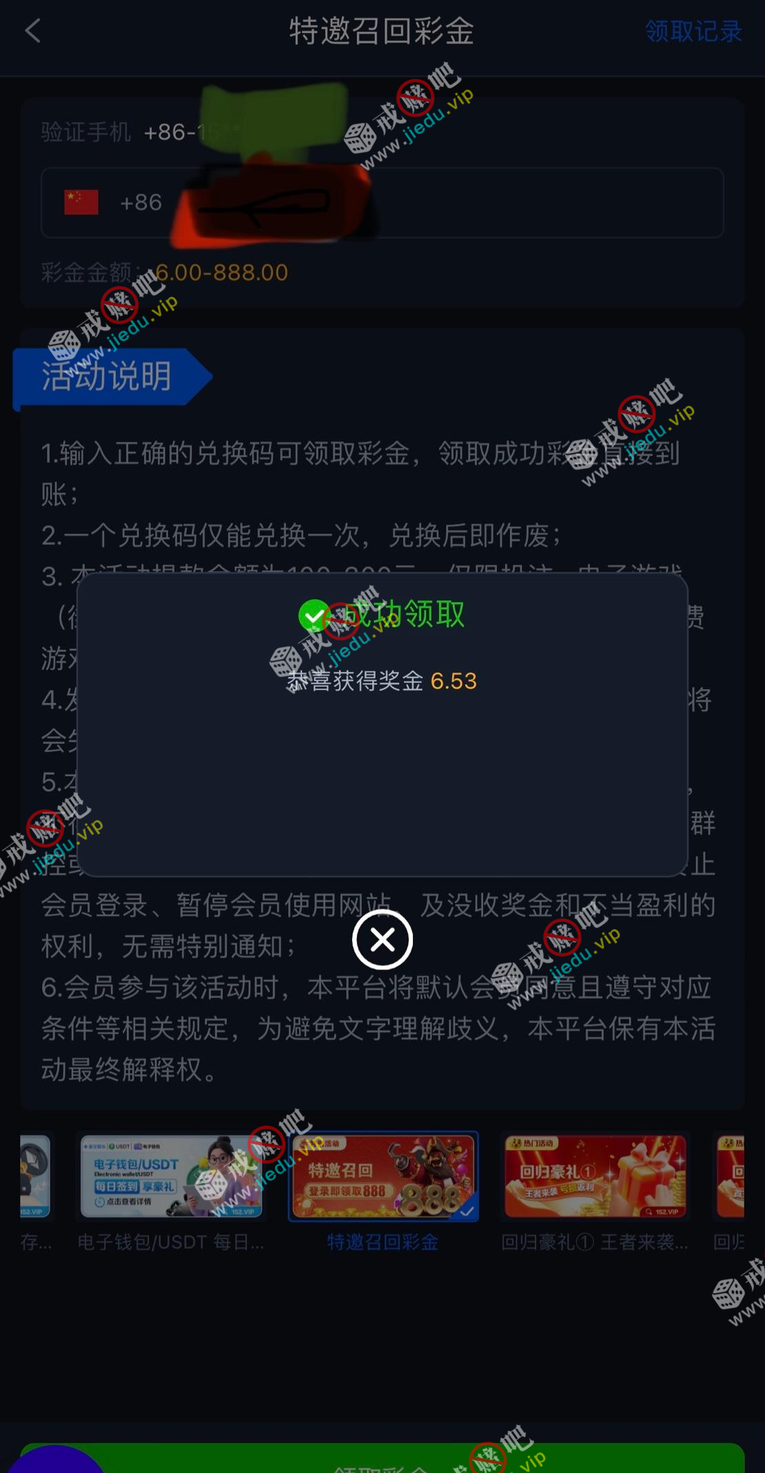 领6到888,随机彩金,大家去看看。